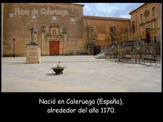 Santo Domingo de Guzmán nació en España en 1170. Fundó la Orden de Predicadores (dominicos) para combatir herejías mediante la predicación itinerante. Recibió del la Virgen María la enseñanza del rosario como arma poderosa para ganar almas. Murió en 1221 siendo canonizado en 1234. Predicó incansablemente el amor a Dios y la caridad hacia los demás hasta el final de sus días.