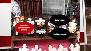 El documento describe la tradición del Santurantikuy, una feria en Cusco donde se venden figuras para los nacimientos navideños, destacando la importancia del artesano Hilario Mendívil. Se menciona la entrega de la medalla Santurantikuy 2017 al artesano Camilo Vera Vizcarra por su obra destacada. Además, se incluyen recomendaciones para los visitantes sobre cómo prepararse para el evento.