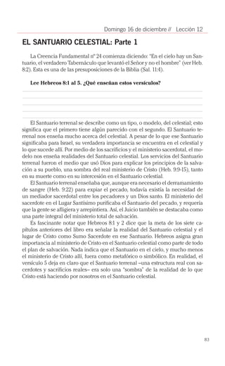 La lección presenta tres eventos escatológicos importantes: 1) el ministerio de Cristo en el Santuario celestial, que incluye la purificación del Santuario; 2) la segunda venida de Cristo para salvar a los que le esperan; y 3) la resurrección de los muertos en Cristo cuando Él regrese. Estos eventos, basados en la Biblia, ofrecen esperanza a los que confían en Dios.