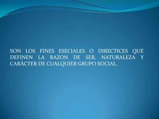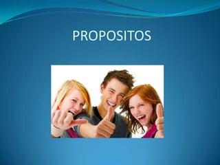 Este documento describe los propósitos de una empresa, que son las aspiraciones fundamentales que definen su razón de ser y naturaleza. Los propósitos proporcionan las pautas para el diseño de un plan estratégico y tienden a existir durante todo el ciclo de vida de la empresa. Se diferencian de los objetivos en que son básicos, genéricos y permanentes. Los propósitos sirven de cimiento para la planeación, permiten orientar las acciones de la empresa y definen su éxito o fracaso. Deben reunir caracterí