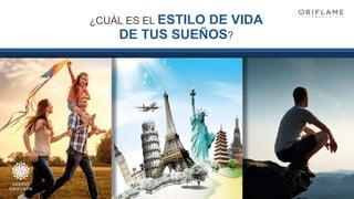 Este documento presenta información sobre estilos de vida y oportunidades de negocio, incluyendo tener un negocio propio, ser empleado o inversionista. También describe el plan de negocio de Oriflame, que ofrece ingresos atractivos e ilimitados a través de la venta directa de productos de belleza y cuidado personal.