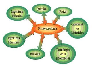 La nanotecnología involucra la manipulación de la materia a escala atómica y molecular. Richard Feynman fue pionero en este campo en 1959. Las aplicaciones potenciales incluyen mejoras en la medicina, el medio ambiente, los deportes y más. Sin embargo, también existen preocupaciones sobre la toxicidad de las nanopartículas.