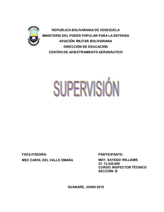 Este documento describe las etapas y propósitos de la supervisión en el contexto educativo. Explica que la supervisión efectiva requiere planificación, organización, dirección, ejecución y retroalimentación constantes. También describe las tres etapas históricas de la supervisión educativa: fiscalizadora, constructiva y creativa. Finalmente, detalla las etapas del proceso de supervisión, incluyendo el planeamiento, seguimiento y control.