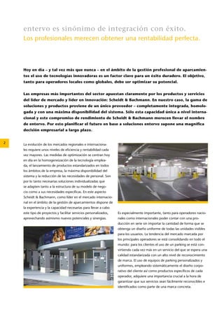 El documento describe una solución de gestión de aparcamientos llamada entervo que ofrece una gama integral de productos y servicios. entervo proporciona hardware y software totalmente integrados de un único proveedor para optimizar la eficiencia y rentabilidad de los operadores de aparcamiento locales y globales. La solución entervo ofrece flexibilidad, personalización y servicios globales las 24 horas para garantizar el éxito duradero de los clientes.
