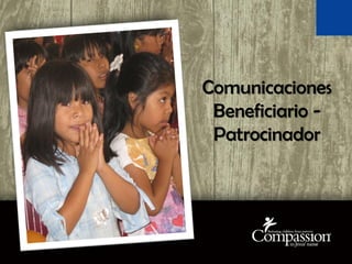 Este documento describe los cambios que se están implementando en el proceso de comunicación entre beneficiarios y patrocinadores en Compassion. Actualmente, las cartas tardan entre 2 a 3 meses en ser entregadas, pero los nuevos procesos digitales y de trabajo automatizado reducirán significativamente este tiempo a solo 3 semanas. Esto permitirá que los beneficiarios y patrocinadores desarrollen relaciones más sólidas al poder comunicarse de manera más oportuna. Además, la automatización reducirá los costos y tiempos de tránsito asociados a