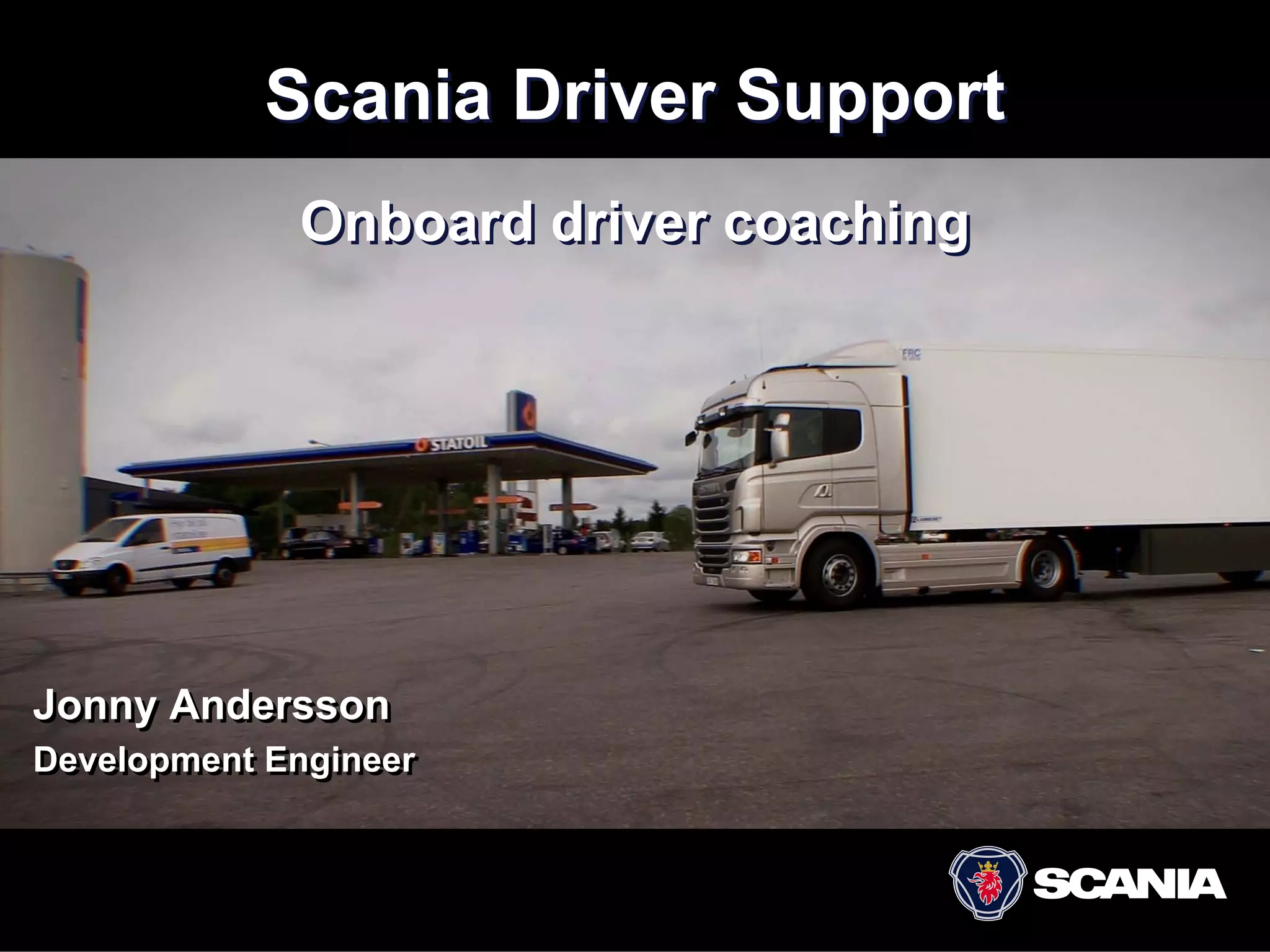 El documento describe el sistema Scania Driver Support, el cual ofrece entrenamiento de conducción a bordo para los conductores. El sistema monitorea parámetros como la anticipación, el uso de frenos y aceleración para brindar retroalimentación y mejorar la economía de combustible en hasta un 10%. El sistema evalúa constantemente la conducción y ofrece puntajes para alentar la mejora continua de las habilidades de los conductores.