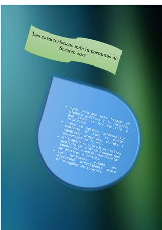 Scratch es un lenguaje de programación que permite crear historias interactivas, juegos y animaciones de manera accesible y atractiva. Es un software gratuito y de código abierto compatible con varios sistemas operativos, que facilita la enseñanza y el aprendizaje de la programación. A pesar de algunas limitaciones para desarrolladores expertos, Scratch ofrece un gran potencial educativo al permitir compartir proyectos en línea.