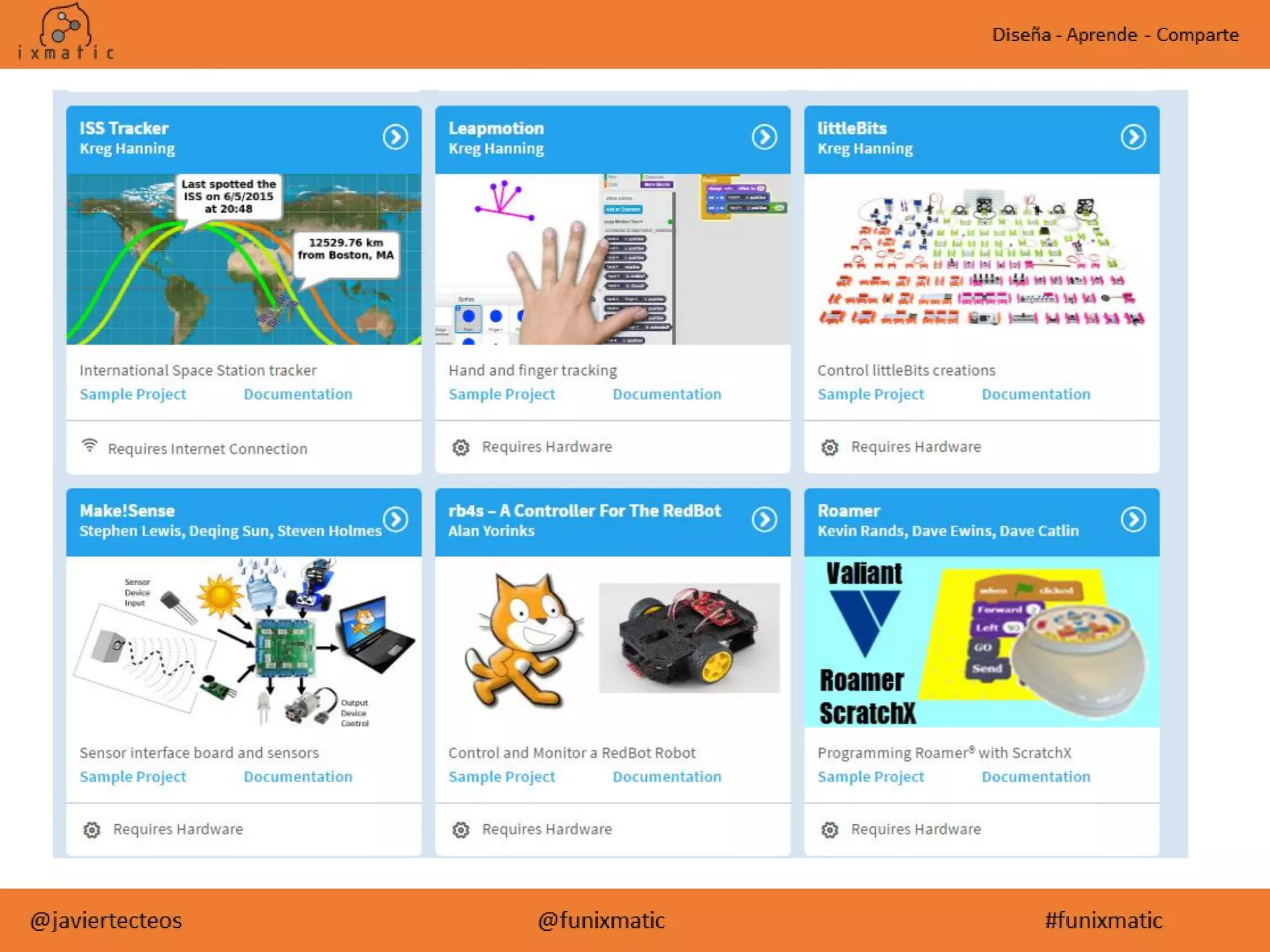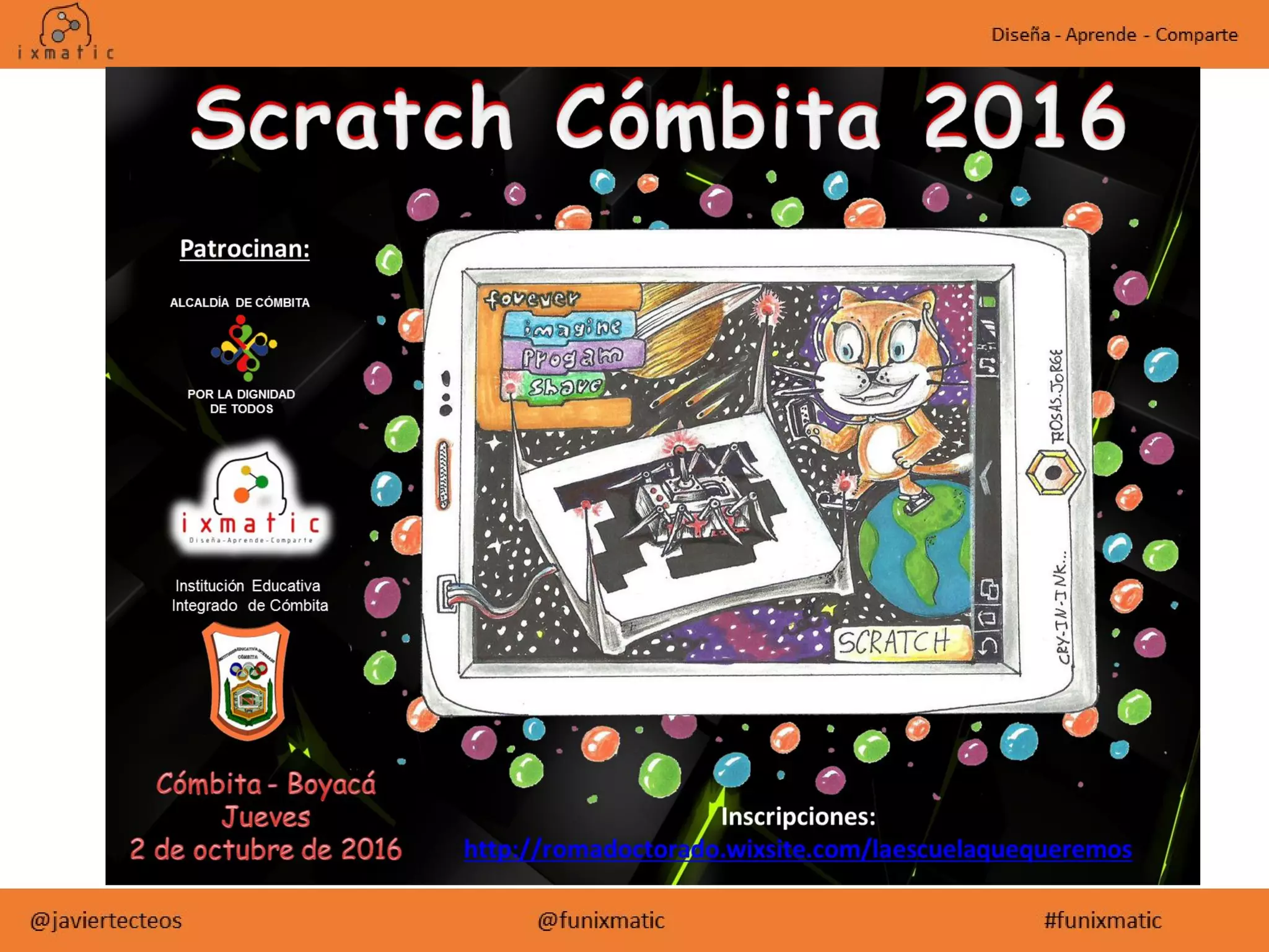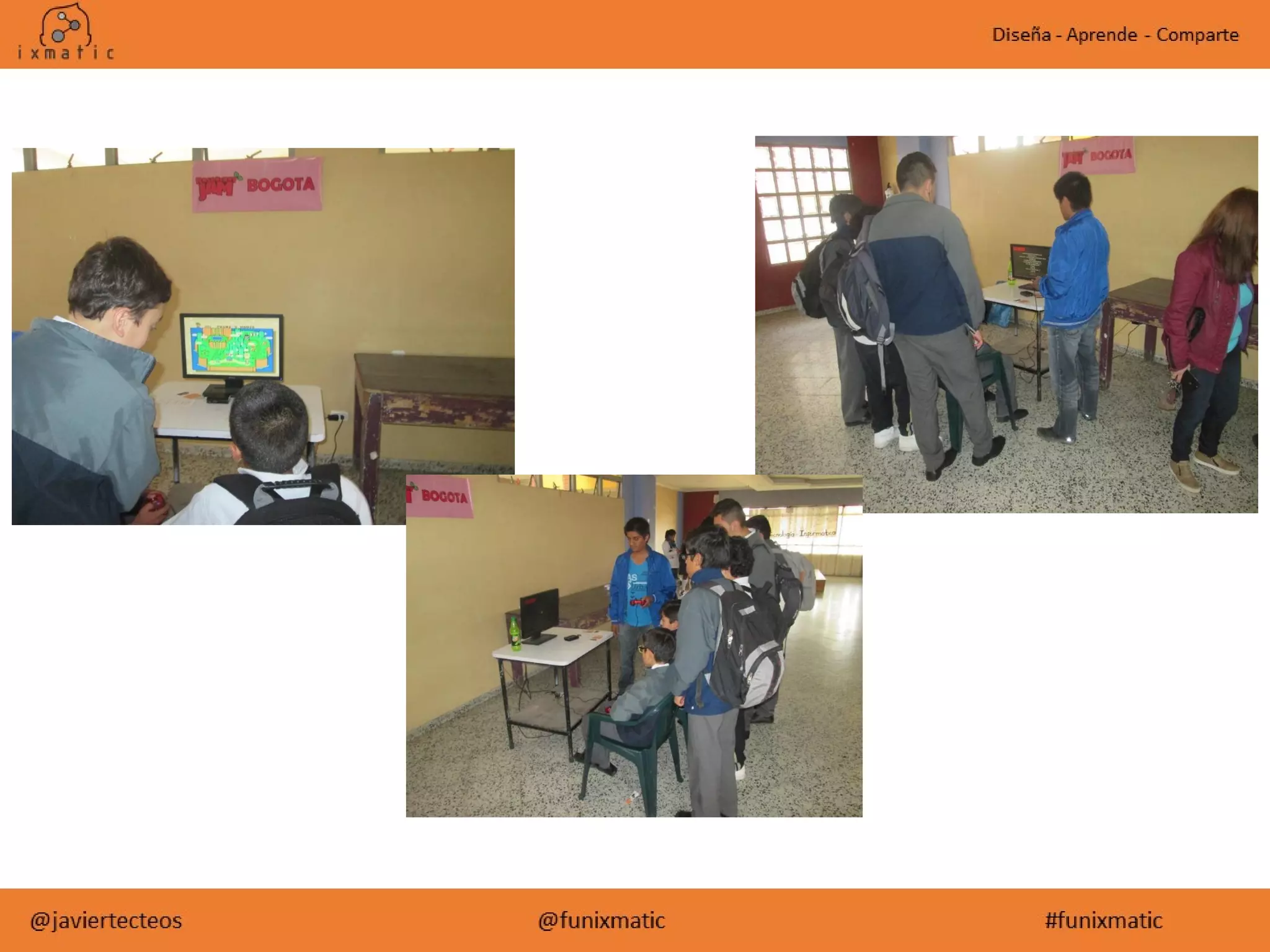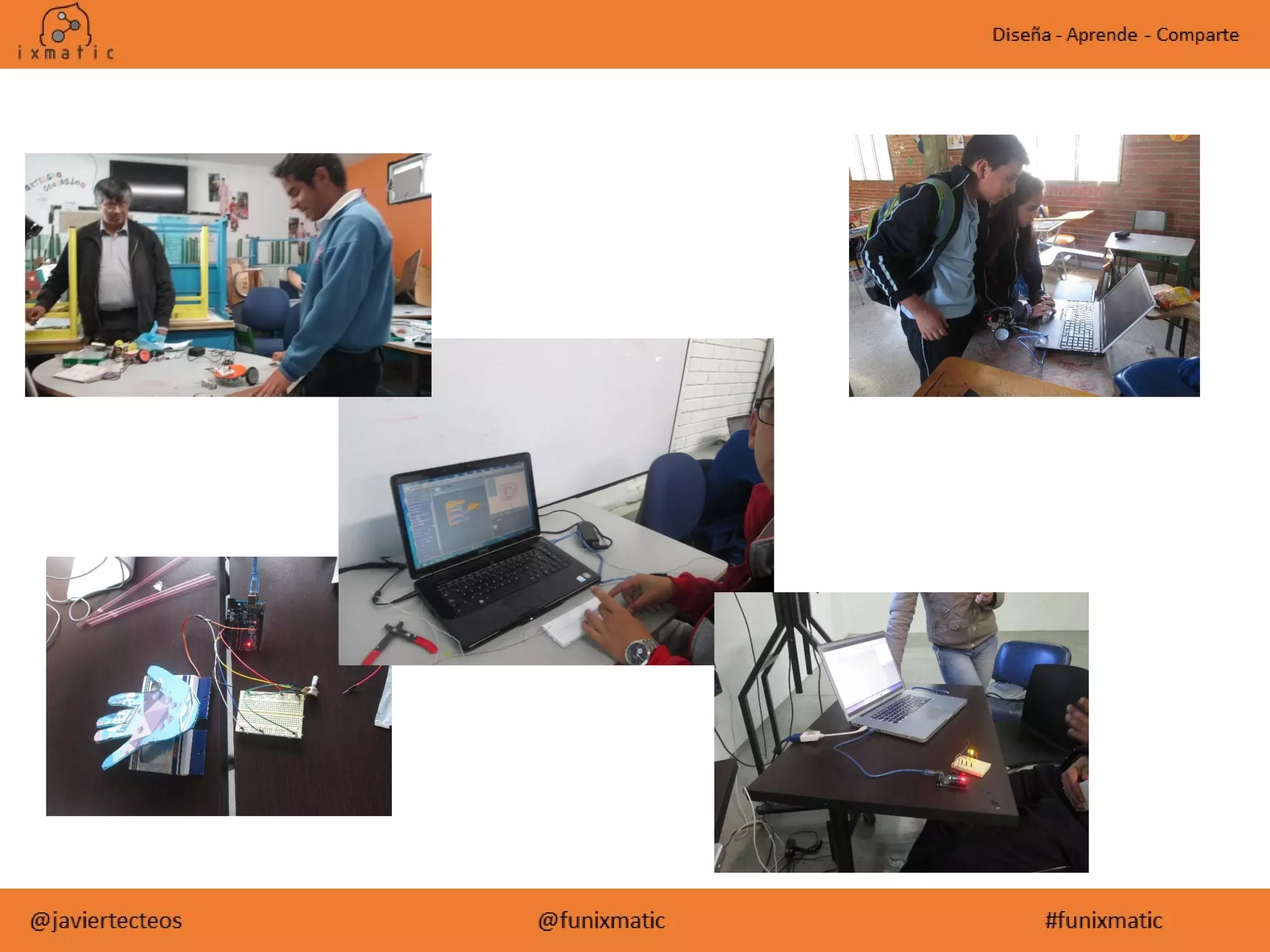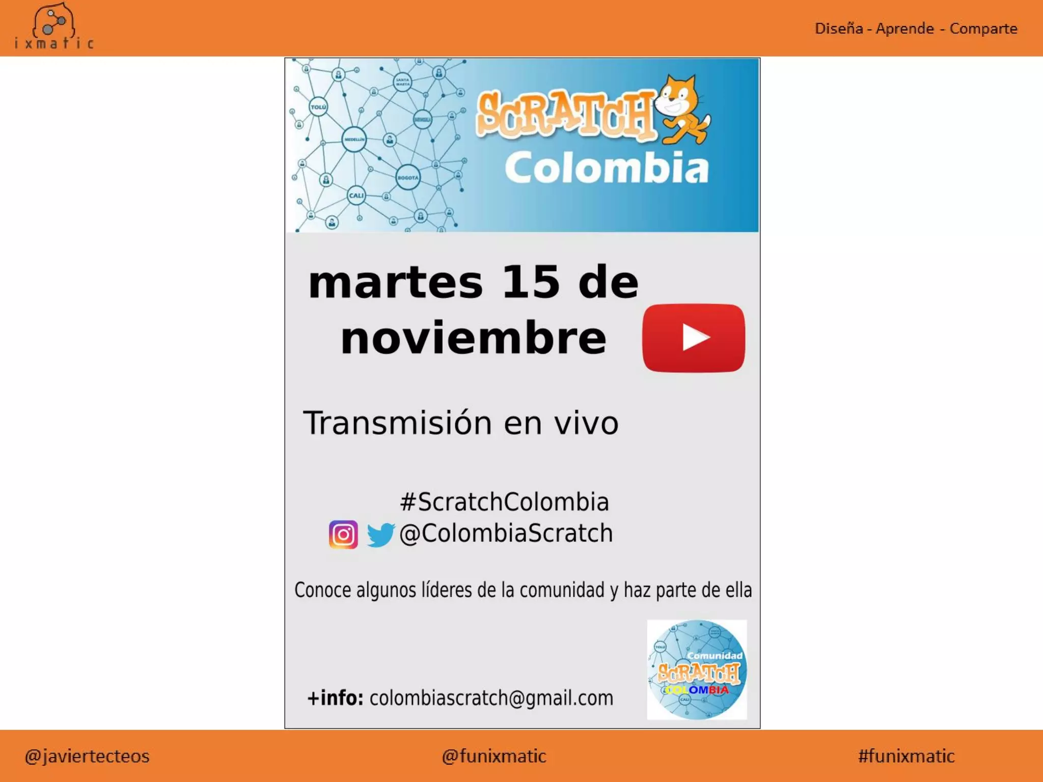 Este documento presenta la información de contacto de Javier García, director de tecnología y redes. Describe los cursos y eventos que ofrece relacionados con robótica, programación, impresión 3D y más. También menciona varias comunidades y recursos en línea relacionados con la ciencia, tecnología y programación para niños en Colombia.