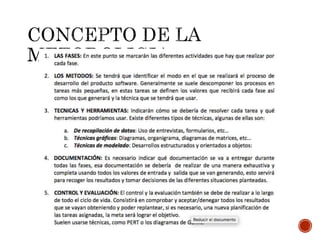 Scrum es un proceso ágil para trabajar colaborativamente en equipo y obtener el mejor resultado posible de un proyecto. En Scrum, el Dueño del Producto define las características del producto, el Scrum Master resuelve conflictos y motiva al equipo, y el Equipo Scrum desarrolla las tareas asignadas. Scrum incluye reuniones regulares como la planificación del Sprint, reuniones diarias y retrospectivas.