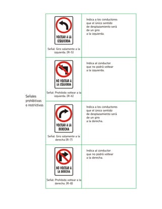 El documento describe diferentes señales de tránsito verticales utilizadas para regular, prevenir e informar a los conductores. Se explica el significado y propósito de señales como Pare, Ceda el paso, Giro prohibido, Velocidad máxima, Poblado, entre otras.