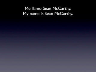 Sean McCarthy presenta información sobre su familia. Tiene 32 primos y 6 tíos. Su hermana se llama Shannon y no tiene hermanos. Su perro se llama Skippy y no tiene gatos. Su cumpleaños es el 22 de diciembre.