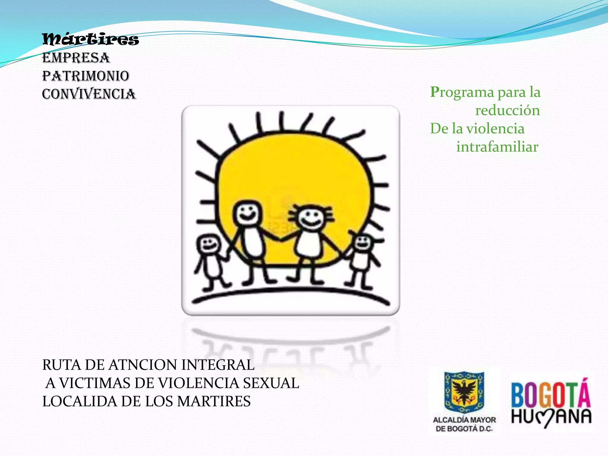 Este documento presenta la ruta de atención integral a víctimas de violencia sexual en la localidad de Los Mártires en Bogotá. Explica que las víctimas deben acudir de inmediato a la URI, el CAIVAS, centros de salud privados o el ICBF según su edad para recibir atención médica de urgencia y acompañamiento en la denuncia. También proporciona números de líneas telefónicas de atención como la 106, 018000918080 y 123 para realizar denuncias an