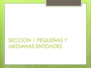 Este documento resume las secciones 1 y 2 de las Normas Internacionales de Información Financiera para Pequeñas y Medianas Entidades (NIIF para PYMES). Explica el alcance y objetivos de las NIIF para PYMES, así como conceptos clave como activos, pasivos, patrimonio, ingresos, gastos y principios de reconocimiento y medición.