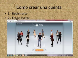 Second Life es un metaverso virtual gratuito lanzado en 2003 donde los usuarios pueden crear avatares, comprar y vender bienes virtuales usando la moneda interna llamada Linden Dólar, y participar en actividades culturales y educativas como exposiciones de arte, conciertos, carreras, y cursos universitarios.