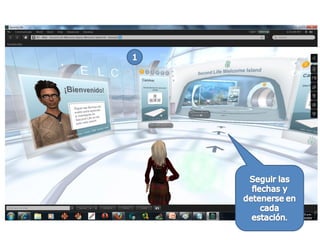 Este documento proporciona los requisitos técnicos mínimos y recomendados para participar en Second Life, así como una breve introducción a las habilidades básicas que se aprenden en la Isla de Bienvenida, como caminar, hacer zoom, comunicarse, sentarse, volar y explorar.