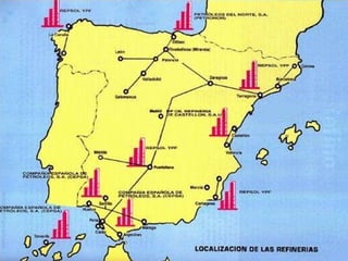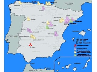 El documento describe el sector industrial y las fuentes de energía en España. Explica que la industria transforma las materias primas en productos semielaborados o elaborados usando fuentes de energía. Luego detalla los principales tipos de materias primas e industrias en España, así como los problemas relacionados con la dependencia energética y el agotamiento de los recursos. Finalmente, resume las principales fuentes de energía en España, incluyendo sus usos y problemas como la baja producción y alta dependencia del exterior.