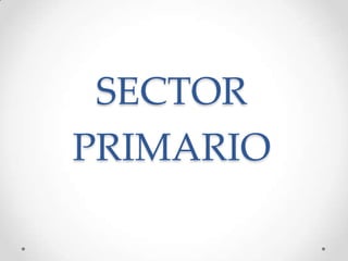 El documento describe el sector primario, incluyendo la agricultura, ganadería, pesca, silvicultura y minería. Estas actividades obtienen productos directamente de la naturaleza sin procesamiento. La agricultura incluye el cultivo de plantas y cría de animales, mientras que la ganadería se enfoca en la cría de animales para carne y leche. El documento también cubre el proceso de beneficio del ganado antes de que la carne llegue a las mesas de los consumidores.