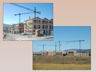 El documento describe el sector secundario de Navarra, que incluye la industria y la construcción. La industria de Navarra se ha desarrollado desde la década de 1960, concentrándose en zonas como el área metropolitana de Pamplona, el corredor del Araquil y el valle del Ebro. Las principales industrias son la metalúrgica, la alimentaria y la del papel.