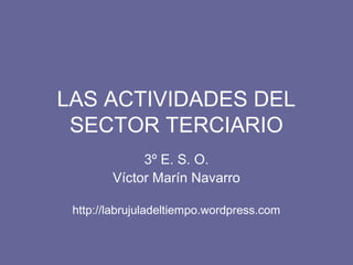 El documento describe las principales actividades del sector terciario o sector de servicios. Explica que este sector incluye actividades como el transporte, el comercio y los servicios sociales. Además, analiza la distribución geográfica del sector terciario, señalando que los países desarrollados tienen una mayor aportación al PIB y población urbana, mientras que los países subdesarrollados dependen más de la agricultura y tienen población rural. Finalmente, describe algunas de las actividades más importantes dentro del sector terciario como el comercio