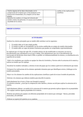 Este documento presenta la planeación de clases para el cuarto bimestre de Ciencias II con énfasis en Física. Se centrará en el tema de los modelos en la ciencia, en particular el modelo cinético de partículas para describir la estructura de la materia. Las actividades propuestas incluyen analizar los criterios de un modelo científico, explicar las ideas históricas sobre la materia de Aristóteles y Newton, construir y evaluar modelos propios, y realizar prácticas en equipo sobre las propiedades de la