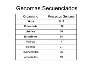 Este documento describe los principales pasos en la secuenciación, limpieza y ensamblaje de genomas. Se han secuenciado miles de genomas de virus, bacterias, arqueas, plantas, hongos e invertebrados y vertebrados. Los pasos incluyen la generación de secuencias, la traducción de cromatogramas, la limpieza de contaminantes y repeticiones, el agrupamiento y el ensamblaje de secuencias usando programas como Phrap. El ensamblaje final se visualiza y edita en Consed para corregir erro