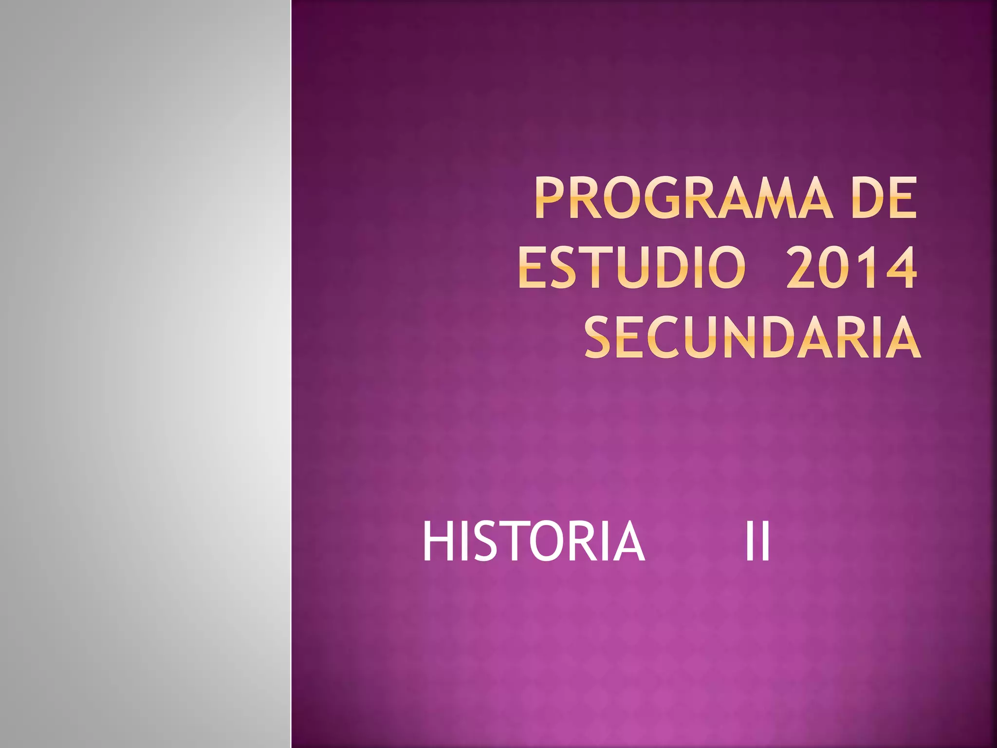 Este documento presenta el programa de estudio de Historia II para el segundo grado de secundaria. Describe los objetivos de aprendizaje, contenidos y competencias que los estudiantes deben desarrollar en el periodo comprendido entre los siglos XV y XVIII, incluyendo el estudio de las civilizaciones antiguas, la Edad Media, el Renacimiento, la Reforma Protestante y el surgimiento de la sociedad del Antiguo Régimen en Europa y Asia. El programa fue desarrollado por la maestra Lorena Gómez Valdez y estará vigente en la
