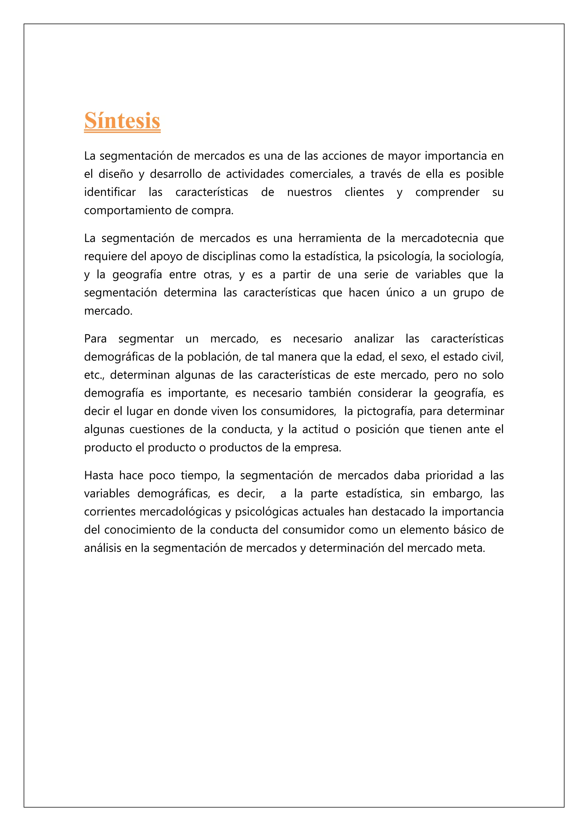 La segmentación de mercados es fundamental para entender el comportamiento del consumidor y adaptar las estrategias de marketing. Utiliza variables demográficas, geográficas, psicográficas y de comportamiento para definir segmentos, permitiendo a las empresas centrarse en las necesidades específicas de cada grupo. El posicionamiento se refiere a la percepción del producto en comparación con la competencia, y su efectividad depende de la clara diferenciación y comunicación al mercado.