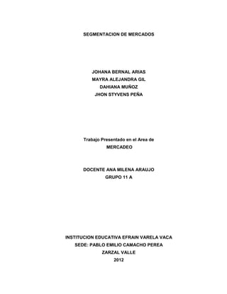Este documento describe la segmentación de mercados y el posicionamiento. Explica que la segmentación de mercados es el proceso de dividir un mercado en grupos más pequeños con características y necesidades similares. Identifica varios criterios para la segmentación como variables demográficas, geográficas y de estilo de vida. También cubre los beneficios de la segmentación y los procesos involucrados. Finalmente, concluye que la segmentación y el posicionamiento son actividades complementarias para posicionar con éxito un producto en la mente del consum