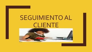 El documento habla sobre el seguimiento al cliente. Explica que el seguimiento al cliente permite conocer mejor las necesidades y hábitos de los clientes para ofrecerles lo mejor, lograr nuevas compras y que los clientes sean fieles a la empresa. Algunos métodos de seguimiento al cliente incluyen establecer expectativas realistas, enfocarse en el servicio posterior a la venta, estar preparado para contingencias y mantener contacto regular con los clientes.