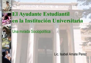 El documento describe la arquitectura institucional de la Universidad Nacional de Tucumán en Argentina. Explica que la universidad tiene como objetivos conservar y transmitir el conocimiento a través de la investigación, docencia y extensión. También discute los retos actuales de definir nuevas políticas universitarias que permitan producir conocimientos críticos y responder a problemas locales.