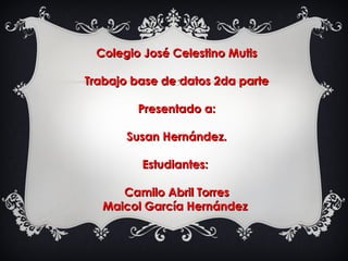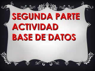 Este documento presenta la segunda parte de un trabajo sobre bases de datos. Explica los conceptos de modelo entidad-relación, qué son las relaciones en bases de datos, los tipos de relaciones (uno a varios, uno a uno, varios a varios), y los pasos para diseñar una base de datos. También incluye una bibliografía de recursos sobre bases de datos.