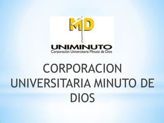 La Corporación Universitaria Minuto de Dios busca ofrecer una educación de alta calidad a precios accesibles para formar egresados competentes y éticos que contribuyan al desarrollo del país. El sistema educativo se caracterizará por la presencia de la espiritualidad, el aporte al desarrollo nacional y las relaciones tanto nacionales como internacionales.