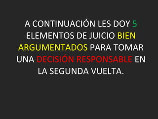 El documento hace una comparación entre los candidatos Santos y Mockus, argumentando que Mockus es el mejor candidato. Según el documento, Santos representa la continuidad de las políticas de Uribe que han fracasado en derrotar completamente a las FARC y han aumentado la corrupción y la ilegalidad. Por otro lado, el documento sostiene que Mockus propone combatir la ilegalidad tanto de las FARC como de los individuos a través de la aplicación estricta de la ley combinada con educación, lo que podría transformar a la sociedad y derrotar a las