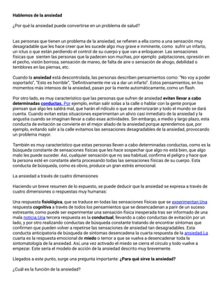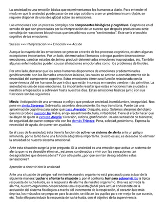 La ansiedad es una emoción básica que activa un sistema de alerta ante peligros. Sirve para preparar el cuerpo para luchar o huir de amenazas. Sin embargo, la ansiedad se vuelve un problema cuando supera ciertos límites e interfiere con la vida diaria. Esto ocurre cuando el cerebro interpreta peligros de forma imaginaria en lugar de reales, activando la respuesta de ansiedad innecesariamente a través de la amígdala.