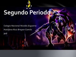 El documento contiene información sobre un estudiante del Colegio Nacional Nicolás Esguerra. Se menciona el nombre del estudiante, su número de identificación y el periodo académico en el que se encuentra.
