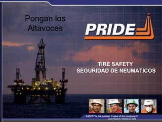 El documento proporciona información sobre la seguridad de los neumáticos. Resalta que los neumáticos caducan 4 años después de su fecha de fabricación, la cual está estampada en el costado. También enfatiza la importancia de inflar los neumáticos a la presión máxima indicada y no sobrecargarlos, ya que esto puede causar fallos y accidentes. Finalmente, explica los diferentes símbolos y números que proporcionan información sobre el tamaño, capacidad de carga, resistencia al calor y tracción de los neum