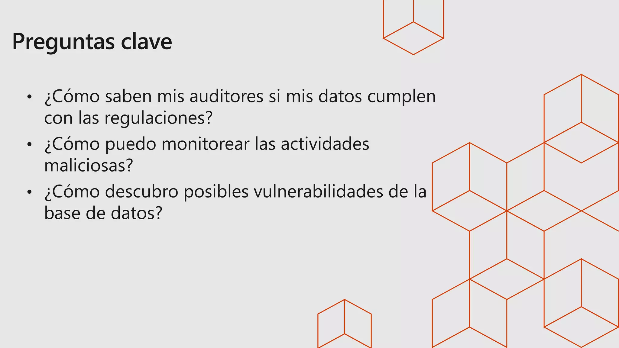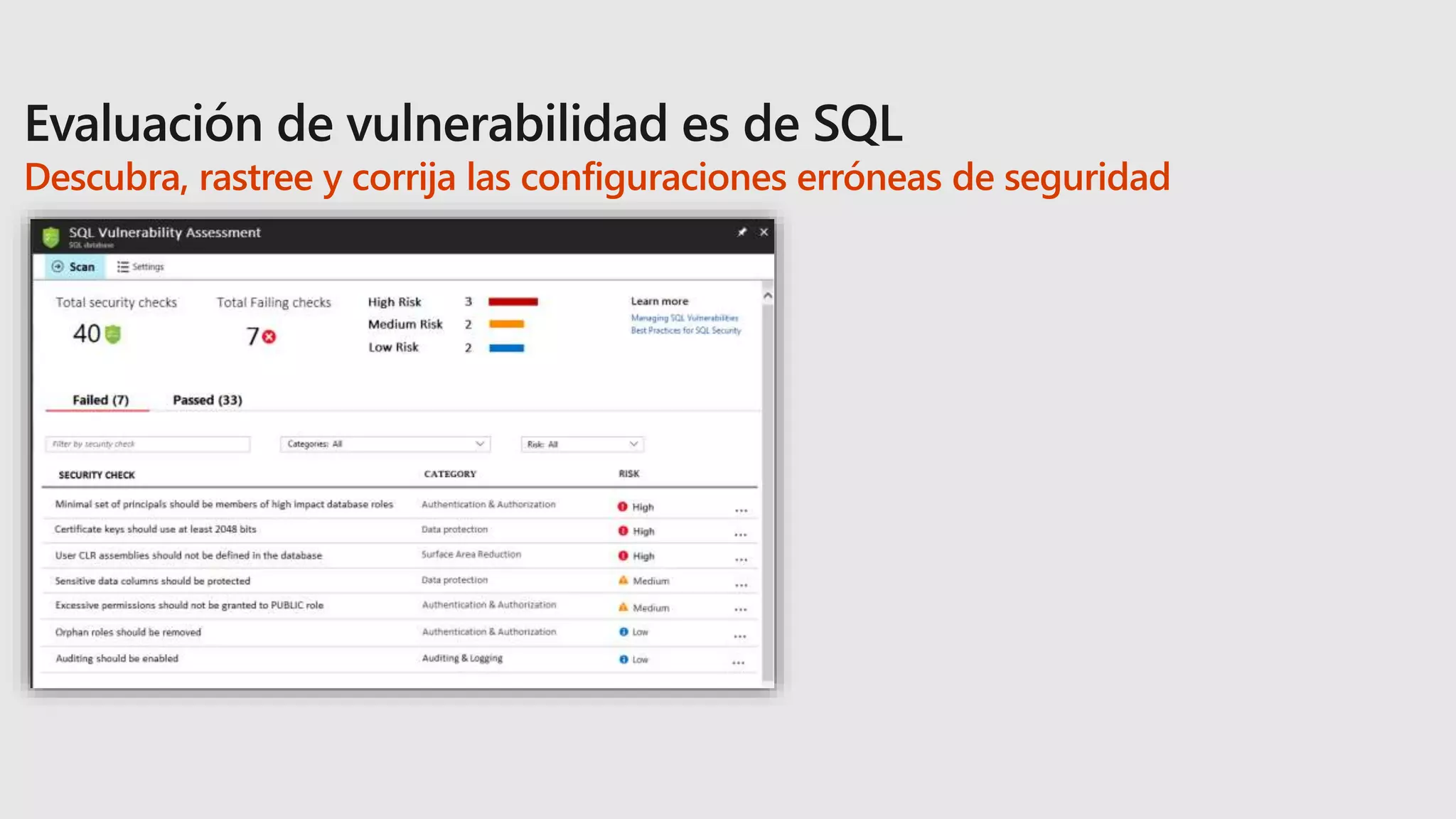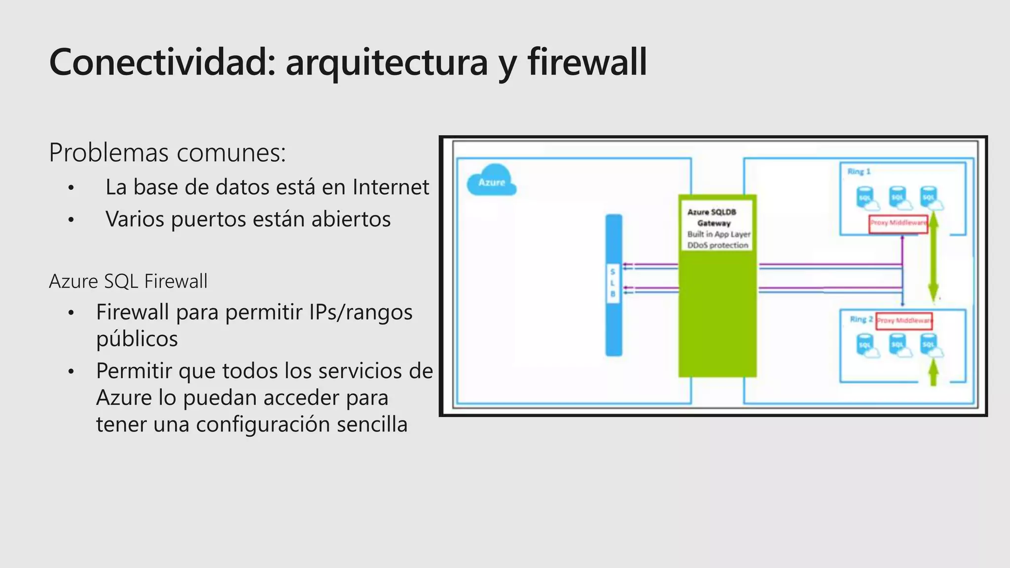 El documento describe las diferentes características y capacidades de seguridad disponibles en Azure SQL Database y Azure SQL Data Warehouse. Incluye gráficos que muestran el número de vulnerabilidades abordadas desde 2010 hasta 2018 y describe opciones como cifrado de datos en tránsito y en reposo, autenticación multifactor, firewalls, detección de amenazas, auditoría y más. El objetivo es ayudar a los clientes a proteger y auditar sus datos de manera segura en la nube.
