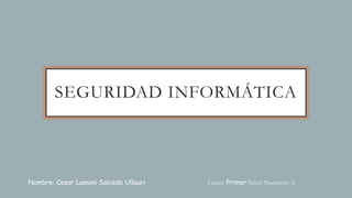 El documento habla sobre la seguridad informática. Define la seguridad informática como el proceso de prevenir y detectar el uso no autorizado de un sistema informático. Explica que implica proteger contra intrusos el uso de nuestros recursos informáticos con intenciones maliciosas o con intención de obtener ganancias. También menciona la importancia de la seguridad informática para prevenir el robo de datos y la necesidad de medidas como software legal, antivirus, cortafuegos, contraseñas complejas y criptografía.