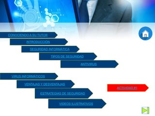 1) El documento introduce el tema de la seguridad informática y explica que se encarga de proteger la integridad y privacidad de la información almacenada en sistemas.