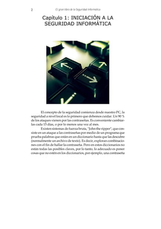 Este documento habla sobre la importancia de la seguridad a nivel local en un PC, incluyendo el uso de contraseñas seguras, antivirus actualizados y protección contra spyware y troyanos. También discute los riesgos asociados con compartir archivos y tener una dirección IP visible, y recomienda el uso de firewalls, software antiespionaje y navegación anónima para mejorar la privacidad y seguridad.