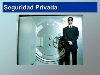 El documento habla sobre los conceptos de seguridad privada e incluye definiciones de seguridad, las diferencias entre seguridad pública y privada, y los pasos clave para establecer un sistema de seguridad privada como determinar los valores a proteger, realizar un estudio de seguridad, establecer planes operativos, de emergencias y recuperación, e identificar y analizar los factores de riesgo.
