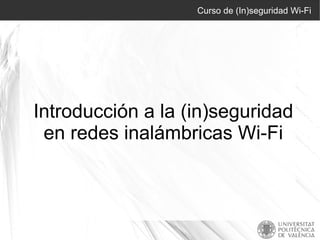 El documento introduce los conceptos básicos de seguridad en redes Wi-Fi, describiendo los usos comunes de Wi-Fi, los peligros asociados con las redes inalámbricas abiertas o mal protegidas, y los mecanismos de seguridad recomendados como WPA2 y el uso de contraseñas seguras. Explica brevemente cómo atacar redes vulnerables y los peligros una vez dentro de la red, concluyendo con pasos para proteger la propia red Wi-Fi.