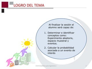 Este documento presenta conceptos básicos de la teoría de probabilidad para ingeniería. Explica definiciones como experimento aleatorio, espacio muestral, evento y probabilidad. Describe diferentes enfoques de probabilidad como el clásico, frecuencial y subjetivo. También cubre axiomas y reglas de probabilidad como la adición para calcular probabilidades de eventos. El documento incluye ejemplos y ejercicios para reforzar los conceptos.