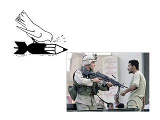 Este documento habla sobre la paz y la no violencia. En la primera parte se menciona que las naciones forjarán sus armas en herramientas de paz y no habrá más guerras entre las naciones. Luego se enumeran diferentes aspectos de la vida donde se desea la paz, incluyendo los hogares, la tierra, los mares, la naturaleza y el sueño. Se concluye pidiendo una paz verdadera, luminosa y permanente.