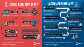 Java es un lenguaje de programación orientado a objetos creado en 1991 por James Gosling en Sun Microsystems. Java es rápido, seguro y multiplataforma, compilando el código a bytecode que se ejecuta en la máquina virtual Java (JVM). Java ha evolucionado para incluir características como servlets, JSP y EJB para aplicaciones web y empresariales. En 2010, Oracle adquirió Sun Microsystems y ahora gestiona el desarrollo de Java.