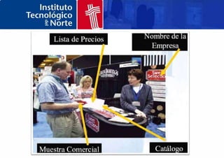 El documento proporciona información sobre las ferias internacionales y su importancia para las empresas. Explica que las ferias permiten promocionar productos y servicios, establecer contactos comerciales, e investigar mercados y competidores. También ofrece consejos sobre cómo planificar la participación en una feria, incluyendo la selección de la feria adecuada, la preparación del stand y el seguimiento de contactos posteriores a la feria.