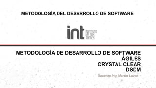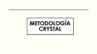 Este documento describe dos metodologías ágiles para el desarrollo de software: Crystal Clear y DSDM. Crystal Clear se enfoca en equipos pequeños de hasta 8 personas y evalúa factores humanos. DSDM es adecuado para proyectos de cualquier tamaño y sigue los principios de entrega temprana y enfoque en las necesidades del negocio. Ambas metodologías usan iteraciones cortas con retroalimentación continua de usuarios para entregar software de manera incremental.