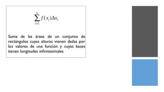 Este documento trata sobre los conceptos básicos de la integral definida y sus propiedades. Explica que la integral definida representa el área bajo una curva entre dos límites y puede calcularse como el límite de la suma de Riemann. También describe propiedades como la linealidad y reglas como la regla de Barrow para calcular la integral definida en términos de la primitiva.