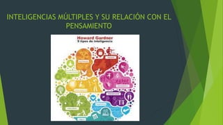 El documento discute las teorías de las inteligencias múltiples de Gardner y su relación con el pensamiento simbólico humano. Según Gardner, la inteligencia ha sido concebida de forma reduccionista y uniforme, ignorando la capacidad humana para crear símbolos. El documento también explora conceptos como la creatividad, las habilidades del pensamiento, la resolución de problemas, y las teorías sobre el desarrollo e influencias de la inteligencia.