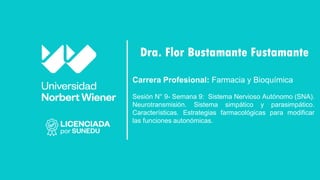 1. La Dra. Flor Bustamante presenta información sobre el sistema nervioso autónomo, incluyendo los neurotransmisores del simpático y parasimpático, y los receptores adrenérgicos.